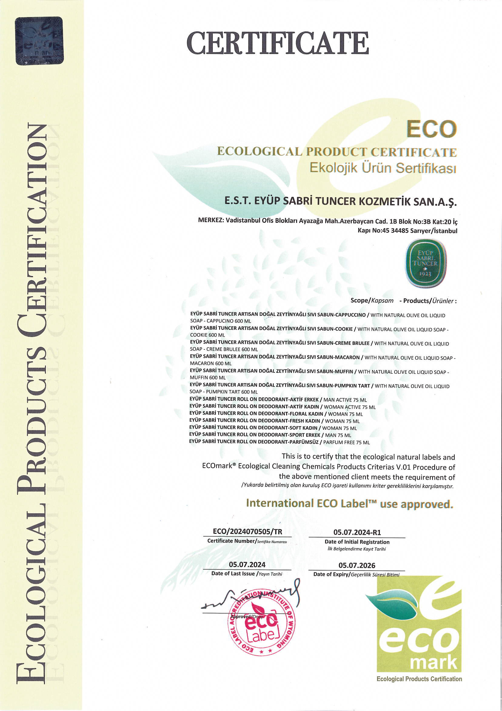 E.S.T EYÜP SABRİ TUNCER KOZMETİK SANAYİ A.Ş.
