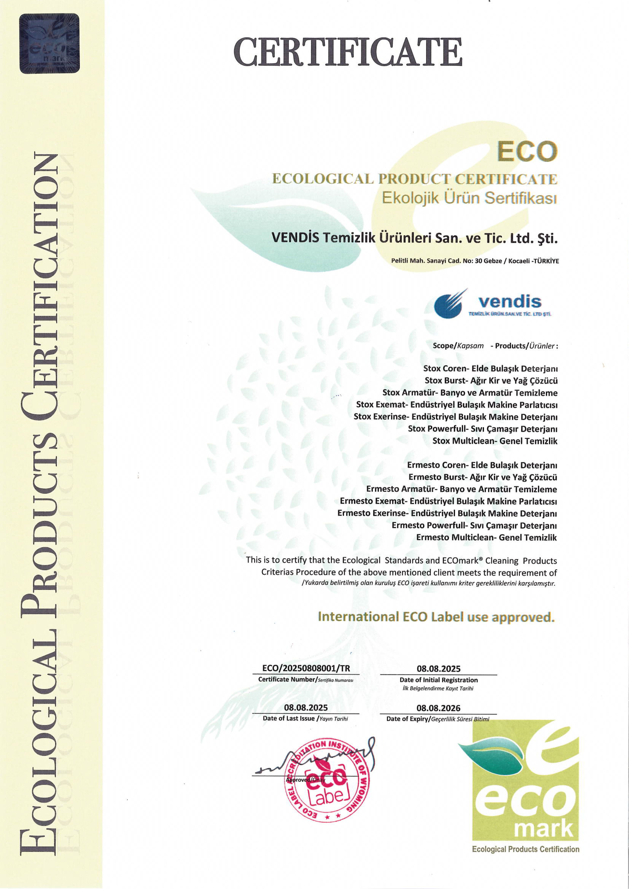VENDİS Temizlik Ürünleri San. ve Tic. Ltd. Şti.