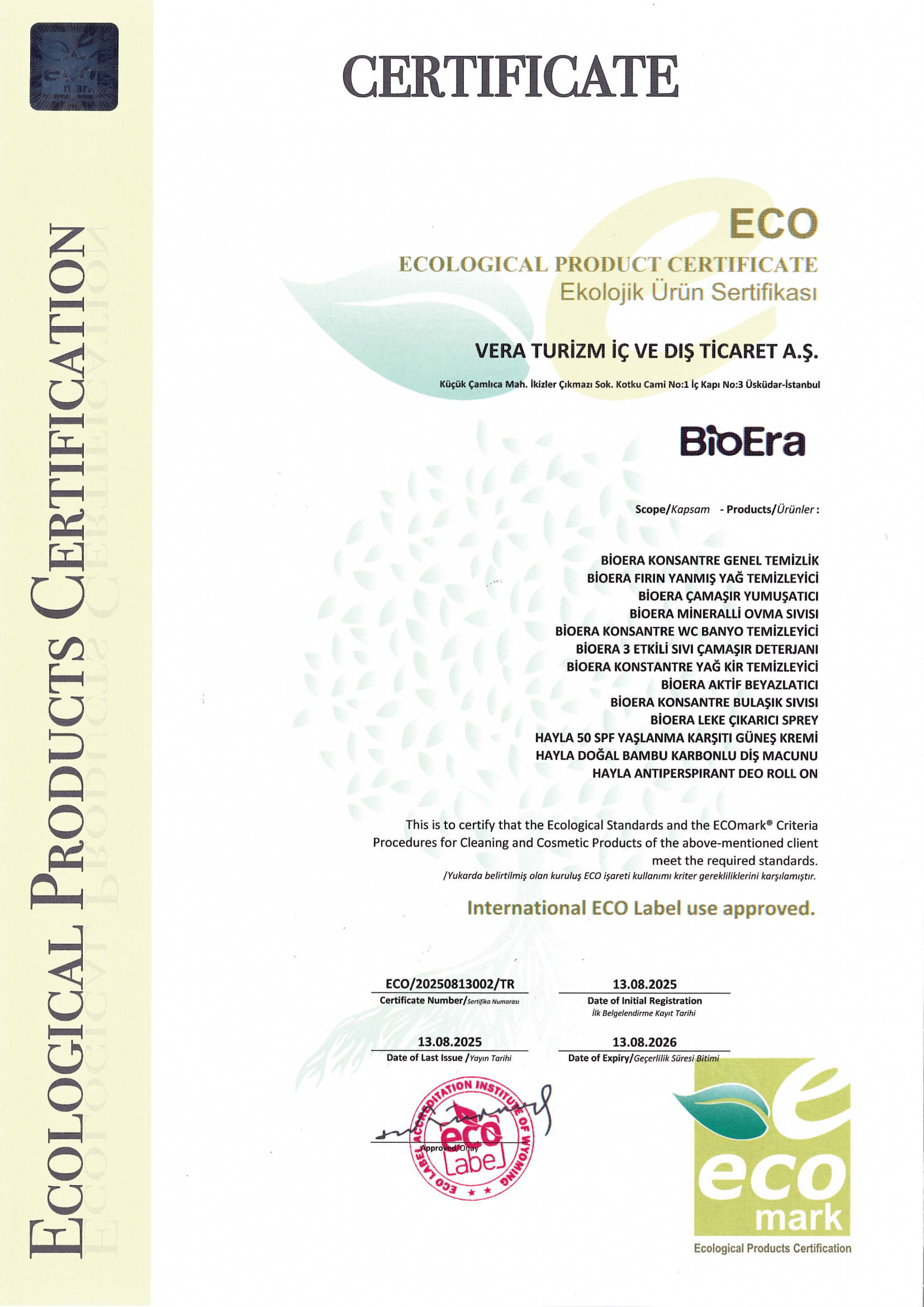 BİOERA KONSANTRE GENEL TEMİZLİK, BİOERA FIRIN YANMIŞ YAĞ TEMİZLEYİCİ, BİOERA ÇAMAŞIR YUMUŞATICI, BİOERA MİNERALLİ OVMA SIVISI, BİOERA KONSANTRE WC BANYO TEMİZLEYİCİ, BİOERA 3 ETKİLİ SIVI ÇAMAŞIR DETERJANI, BİOERA KONSTANTRE YAĞ KİR TEMİZLEYİCİ, BİOERA AKTİF BEYAZLATICI, BİOERA KONSANTRE BULAŞIK SIVISI, BİOERA LEKE ÇIKARICI SPREY, HAYLA 50 SPF YAŞLANMA KARŞITI GÜNEŞ KREMİ, HAYLA DOĞAL BAMBU KARBONLU DİŞ MACUNU, HAYLA ANTIPERSPIRANT DEO ROLL ON